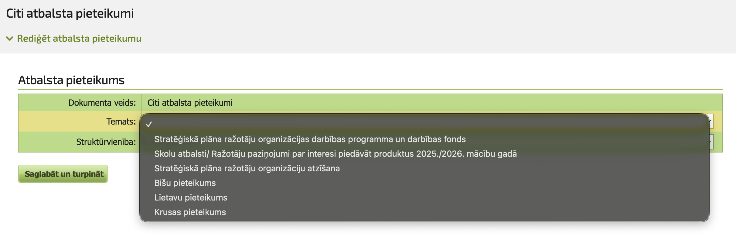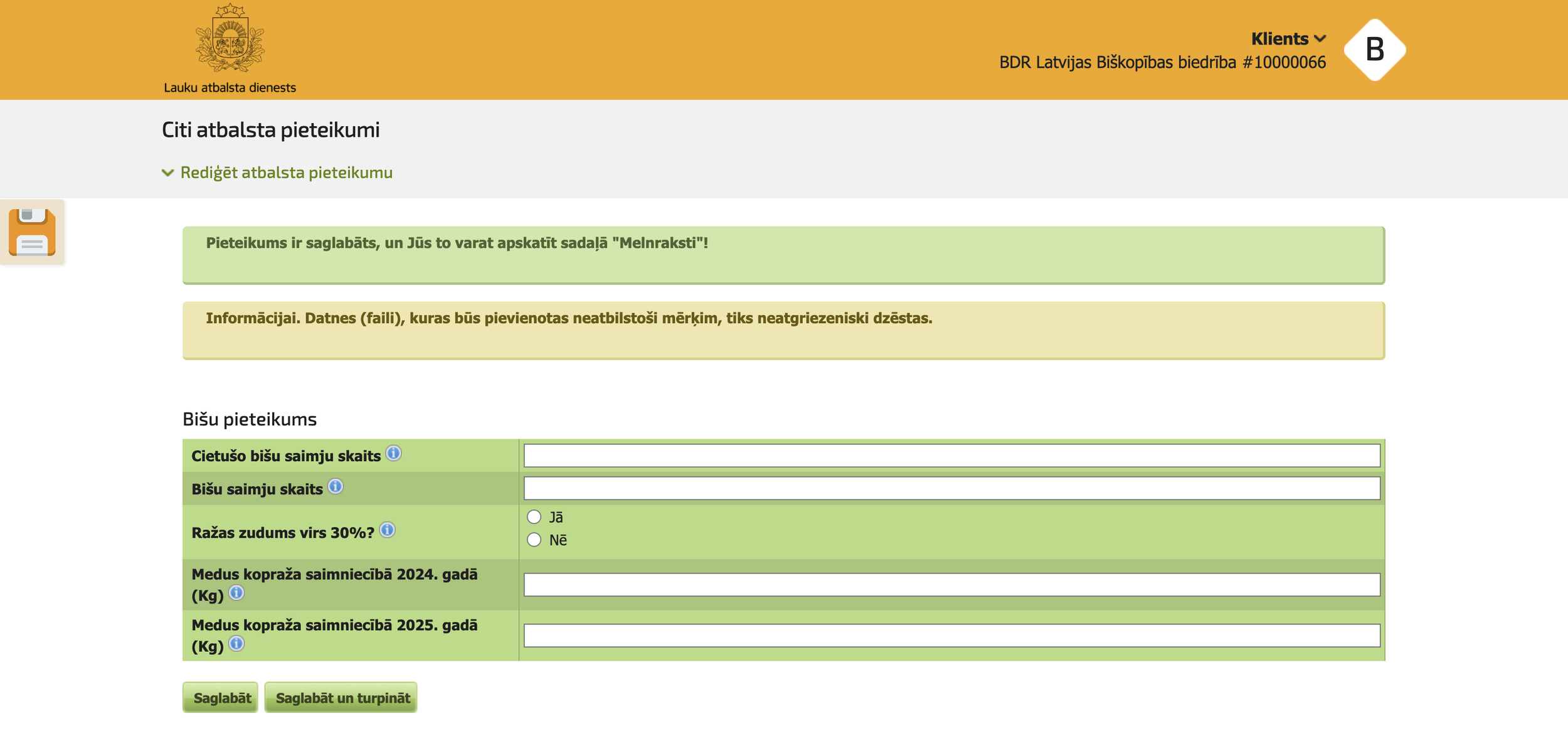 2. No saraksta jāizvēlas "Bišu pieteikums"